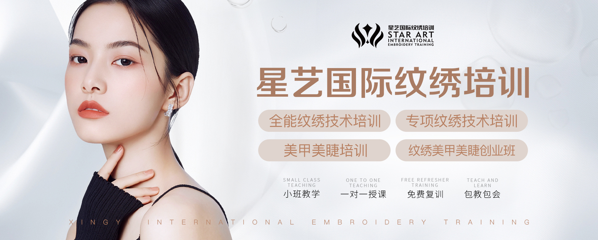 星藝國際 創造美 傳播美合肥星藝國際美業是一家集紋飾半永久,全科皮膚管理、日式美甲美婕、美妝藝術素描教育及分校加盟,高端產品批發于一體的紋飾培訓機構。機構成立于2008年、是當今國內優秀的紋繡培訓的機構之一、擁有國內專業美業技術教學團隊、致力于為每一位女性開拓更時尚的美麗時尚之路。院長簡介奚彬,原名奚齊彬,紋繡師,1988年出生于白河縣,陜西安康人,畢業于中南財經政法大學。現任合肥星藝教育咨詢管理有限公司CEO,星藝國際美業商學院創始人、佳禾醫美高級合伙人股東、中國紋飾藝術大賽發起人、第三屆國際半永久萬人大賽評判長、香港GO紋繡品牌亞太地區首席運營官。2008年創辦星藝國際美業商學院,2015年創辦合肥星藝教育咨詢管理有限公司,2015年擔任合肥星藝教育咨詢管理有限公司CEO.